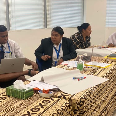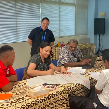 Participants included students of the SJTBTC, ACOM priests in Suva as well as ACOM staff from the Solomons Island, Suva Archdeaconry Priests, and youth members from the Tonga Episcopal Unit. Today's session covered CIVA principles, their contextualization, and their role in the church context. It emphasized the importance of vulnerability assessments, adapting the framework to specific community contexts, and empowering church members, particularly youth, to take active roles in resilience-building. They explored vulnerability challenges, such as water security, infrastructure resilience, and socio-economic pressures.